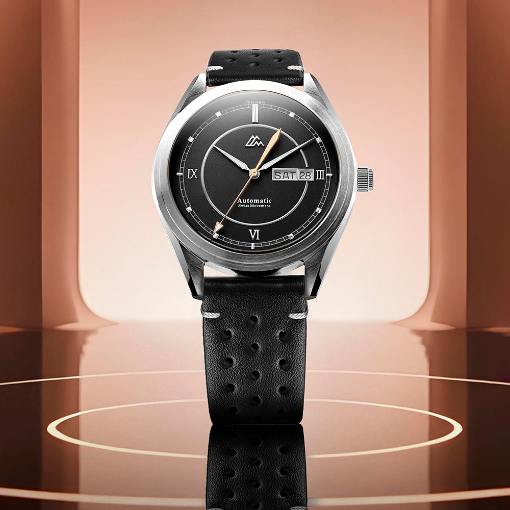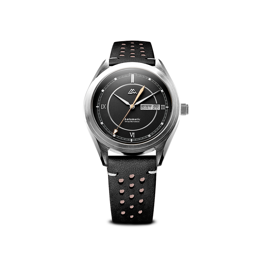 Exclusive interchangeable Perforated Black Leather strap designed specifically for the effortless switch between looks to transform your watch to match any occasion.