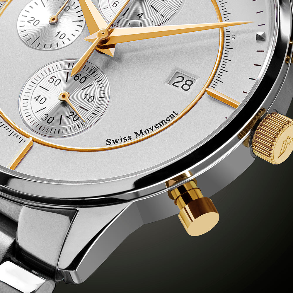 At the heart of this exquisite watch lies the unmatched precision of the Swiss "Ronda" 3540.D movement, renowned for its reliability and accuracy, encased in durable stainless steel and topped with scratch-resistant sapphire crystal glass.