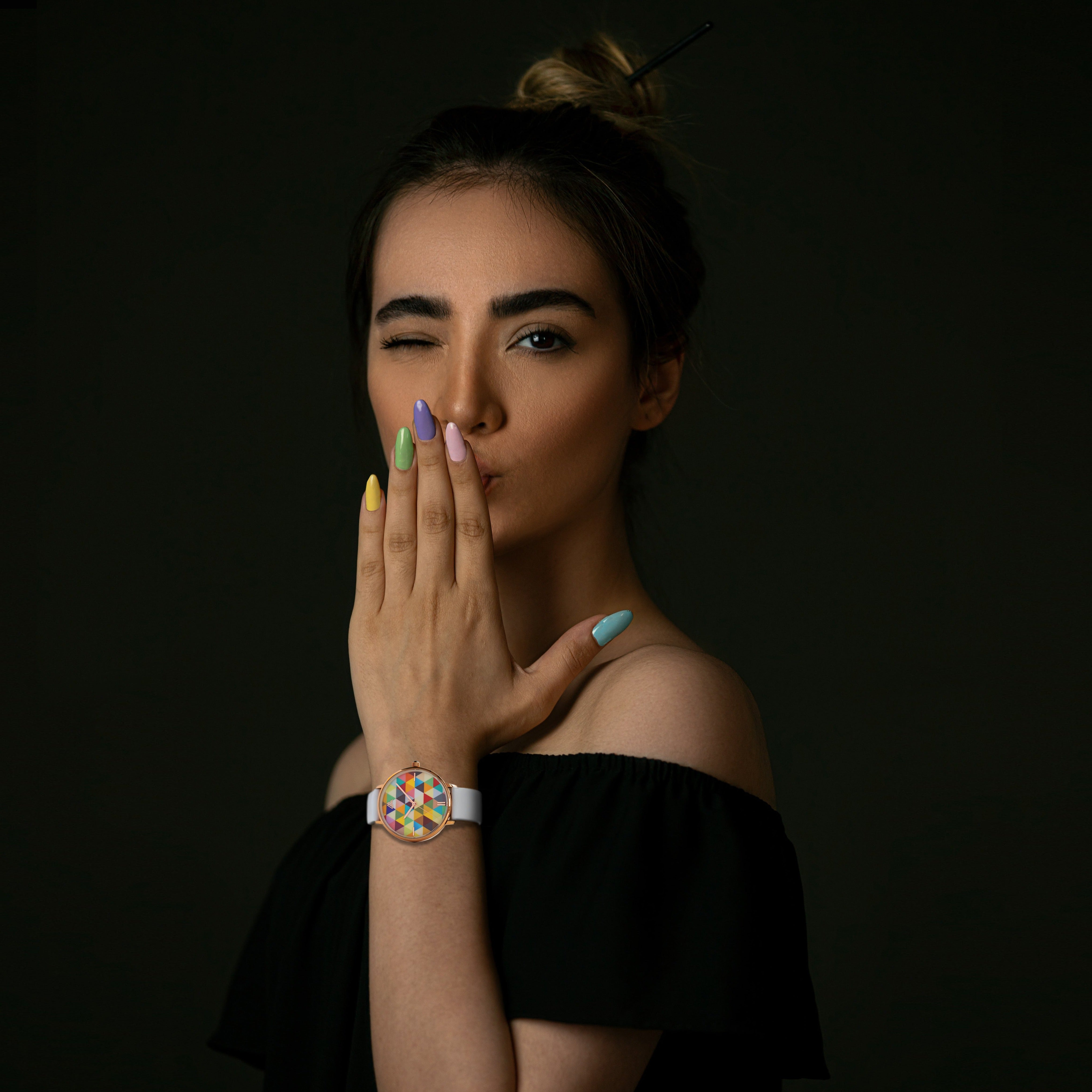 This extraordinary dial is a true work of art, meticulously crafted to blend vibrant colors and precise geometric shapes into a stunning visual symphony. The dial is a captivating kaleidoscope of hues, each shade carefully chosen to evoke a sense of harmony and vibrancy. As light dances across the mesmerizing pattern, it creates a dazzling combination that catches the eye and sparks conversation.
